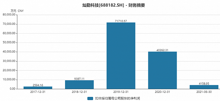 灿勤科技净利润同样经历大幅波动。在2018年和2019年的爆增后,2020年和2021年连续下滑,2021年已经基本回到2018年的水平,上半年扣非后净利润为4159万元。