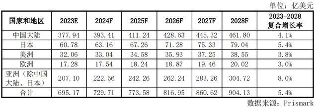 根据Prismark预测,未来几年,中国仍将是PCB行业的主要制造中心。2023年国内PCB市场产值达377.94亿美元,同比下降13.2%。预测2023年至2028年总体保持增长,但预期会出现一些生产转移,复合增长率为4.1%,低于全球增速。Prismark预计未来五年各个国家和地区的PCB产值增长情况如下: