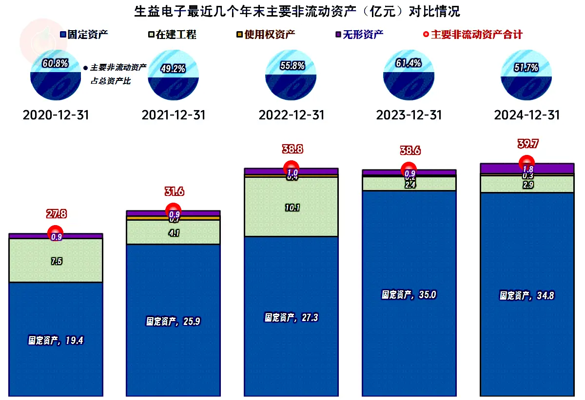 “经营活动的现金流量净额”表现不错,但近六年的固定资产投资规模都很大,主要原因当然是因为上市融资后需要按计划投入。2024年的投资规模在下降,后续可能会逐步慢下来,原因之一当然是手中的可用资金已经不多了。