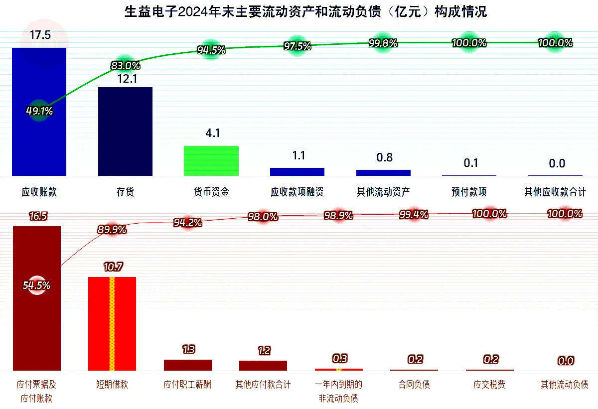 流动资产和流动负债的最大项目都是占比过半的应收账款和应付账款等,其规模相当,可以滚动着收付。存货和货币资金是另外两大流动负债项目,而与此对应的就是短期借款了。一般是需要加强存货等周转才能解决这些负债到期的问题,在现在有息负债的规模还可控的情况上,借新还旧等措施也是可以的,而且是完全没有问题的。