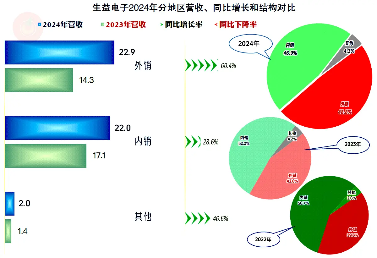 内外销市场都在较快增长,外销市场以超六成的增长,超过内销市场,成为生益电子的第一大市场。在2022年时外销市场的占比还不到四成,现在已经成为第一大市场了;这总体上是好事,但也加重了对风险相对更高的市场的依赖。