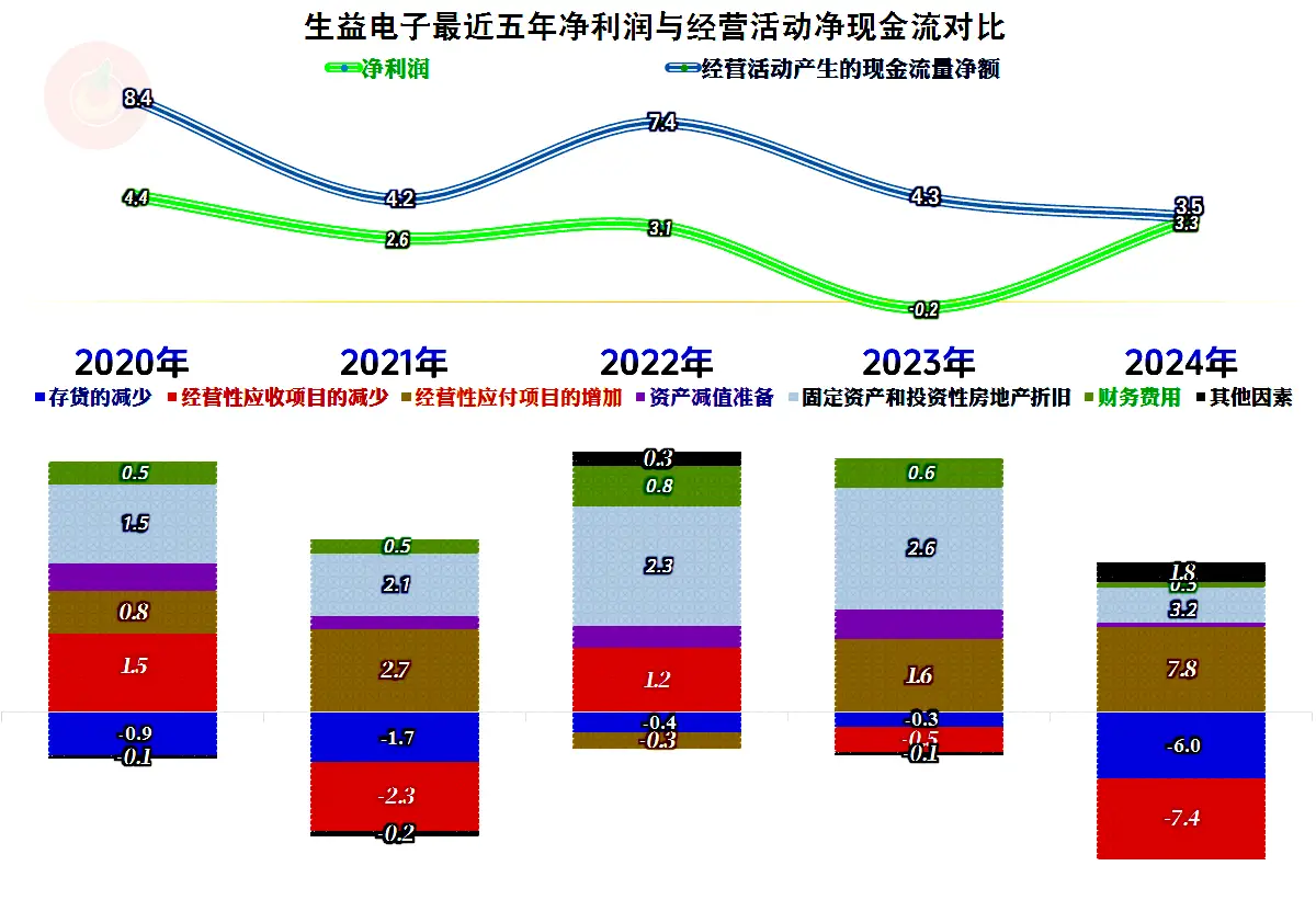 前几年,通过增加占用供应链资金等措施,加上固定资产折旧的规模也比较大,还在持续增长,“经营活动的现金流量净额”就一直比净利润高很多。2024年因为应收项目和存货的增长太快,应付项目消化不了这些增长,导致两者比较接近了。
