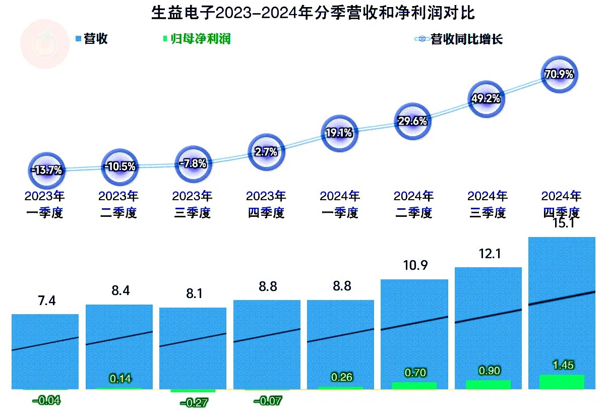 分季度来看,2023年前三季度的营收还是同比下跌的状态,四季度就开始了增长,增长状态不仅持续了五个季度,而且还有加速的迹象;已经连续四个季度盈利,盈利额有逐季走高的趋势。离现面最近的2024年四季度,营收和净利润都创下了单季新高;2025年更可能是沿着四季度发展下去,增速上不见得还会有这么高,但在规模上确实已经提起来了。