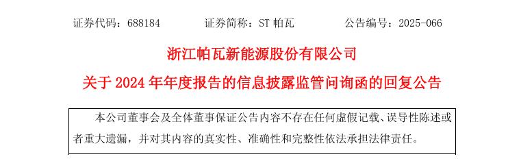 7月14日,浙江帕瓦新能源股份有限公司(ST帕瓦,688184.SH)答复了交易所问询,涉及向供应商多付工程及设备款事项和重大会计差错更正事项。