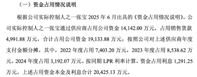 注意到,张宝还存在占用上市公司资金的情形。ST帕瓦在2025年7月13日回复上交所问询函时披露,张宝通过供应商及销售货款占用公司资金合计1.91亿元。按LPR利率计算,资金占用利息及本金合计达2.04亿元。张宝承诺将于2025年9月30日前归还全部资金占用款。