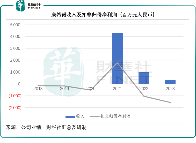 在2021年,新冠疫情期间,新冠疫苗的供应达到了前所未有的高度。在这一背景下,康希诺公司凭借其卓越的业务表现,实现了收入的显著增长,并成功实现了盈利。然而,随着2022年疫情形势的好转,新冠疫苗的需求逐渐下降,康希诺公司的收入也开始出现大幅度的收缩。