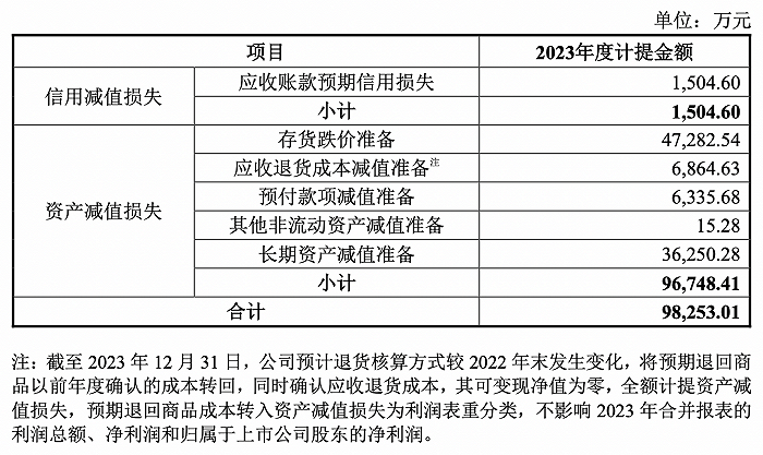 同日,康希诺还发布关于2023年度计提资产减值准备的公告,其提到,新冠疫苗产品市场需求不及预期,新冠疫苗退货增加,未来新冠疫苗销售具有较大的不确定性,同时考虑新冠疫苗相关存货和长期资产的未来使用计划,对存在减值迹象的存货、应收退货成本、预付款项、其他非流动资产和长期资产计提资产减值准备,合计9.67亿元。此外,截至2023年12月31日长账龄的应收账款余额增加,本期信用减值损失计提1504.60万元。