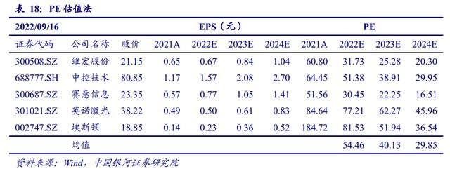 公司所在的细分赛道为激光运控系统,属于激光产业链,也属于工业软件板块,具有国产替代预期。因此我们选取了相关行业(包括激光运控、激光器、工业软件等)的可比公司,2022-2024年的动态 PE 的平均值分别为 54.46/40.13/29.85 倍。公司的估值低于平均,且具有较高的成长性。