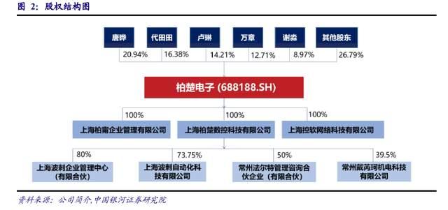 其中,子公司柏楚数控科技负责激光自动化产品及其衍生系统的集成及销售;控软网络科技负责生产管理 MES 系统及云服务软件产品的开发和销售;柏甯企业管理公司负责企业管理,常州戴芮珂机电负责精密工装夹具、机电设备配件的设计制造销售;波刺自动化负责智能传感器设备及其配件的研发、生产及销售。