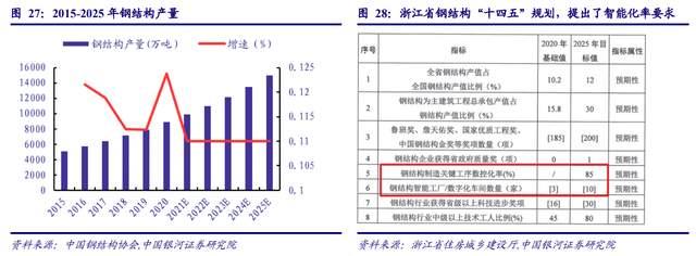 钢结构具有强度高、自重轻、工业化程度高、施工周期短、绿色环保、适用范围广等优点,近年来相关产业受到国家政策的积极支持。“十四五”规划和 2035 年远景目标纲要中提到,发展智能制造,推广绿色建材、装配式建筑和钢结构住宅。