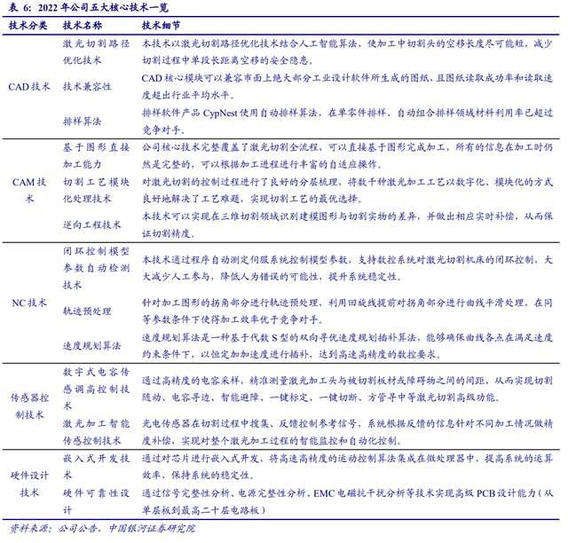 公司完整掌握了激光切割控制系统研发所需的 CAD、CAM、NC、传感器和硬件设计技术五大类关键技术,主营产品使用范围涵盖了激光切割过程涉及的各项流程(包括排版、切割、数控、调高传感等),形成了一套激光切割整体解决方案,各环节与各部件、软件与硬件均可实现良好兼容。