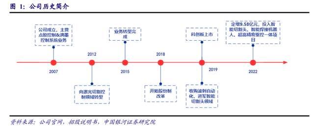 2018年开始股份制改革,至2019年于上交所科创板上市,同年收购波刺自动化,向激光切割头领域进军。