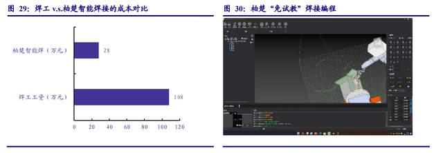 且目前国产焊接机器人为需要人工示教的半自动化模式,公司通过 CAD、CAM、NC 三大核心技术进行焊接机器人加工工艺控制,达到取代人工示教模式进行自动化智能焊接的效果。