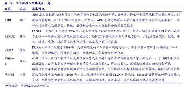 在工业机器人领域,国际制造商有 ABB 集团、FANUC(发那科)、KUKA(库卡)、Yaskawa(安川)等,可应用于装配、搬运、焊接、铸造、喷涂、码垛等生产环节,并没有厂家针对钢结构焊接的细分赛道做单独开发定制,因此公司将是第一位开辟新赛道的玩家。