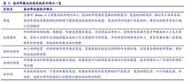 与此同时,高功率激光运控相较中低功率,除上述提到的厚度外,对加工品质(如纹理、粗糙度、垂直度)、材料利用率(因原材料更昂贵)、智能化程度(与工厂自动化平台对接)、安全性(抗干扰能力)这四大方面的要求均更高,因此技术难度大、壁垒明显。