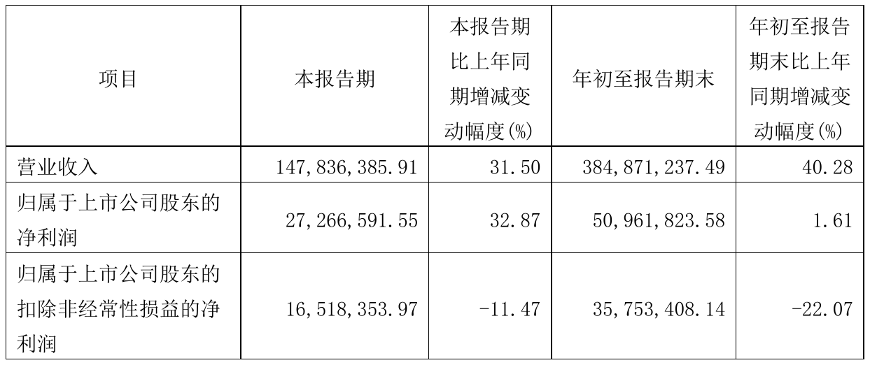 智洋创新(688191)近日发布2021年前三季度报告,报告期内营业收入384,871,237.49元,同比增加40.28%;净利50,961,823.58元,同比净利增加1.61%。