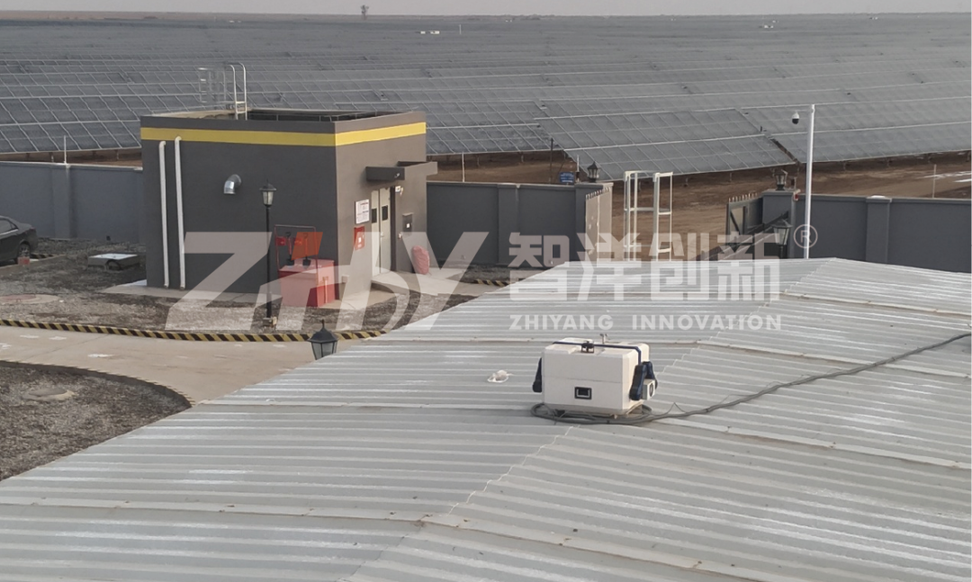 本案例位于新疆塔克拉玛干沙漠北部,归类为沙戈荒地带的光伏电站类型。该区域自然环境严苛,风沙活动频繁,全年温差显著,构成了极为恶劣的运行环境。智洋创新自主研发的无人机机场,内部配备先进的半导体空调系统,并达到了IP55级别的防尘防水防护标准,从而能够为无人机提供稳定且适宜的运行环境。这一设计确保无人机系统在极端条件下的持续稳定运行,为光伏电站实现少人值守的运营模式提供坚实的技术支撑和有效保障。