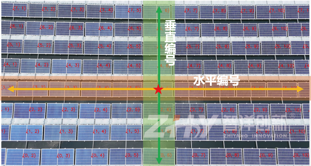 根据光伏场区子阵与组串的相对位置关系,自研的中心点匹配的光伏板坐标定位算法,极大程度的克服了水面光伏板漂浮导致的偏差问题,提高了缺陷识别的精度。