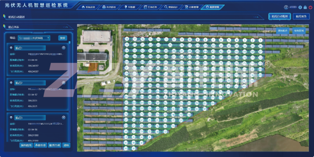 光伏智慧化巡检结合无人机和AI技术,具备了场站数字化管理、组串自动编号、航线自动规划、可见光红外图像AI识别、IV分析、IV CV融合诊断等深度应用功能,解决了固定支架、柔性支架、追踪式支架和水面漂浮支架的差异性问题,可适用于平原、山地、水面、沙戈荒等光伏场站的全域精细化巡检。