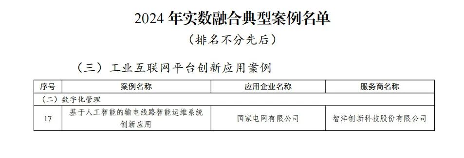 在国家级荣誉层面,智洋创新“基于人工智能的输电线路智能运维系统创新应用”荣登工信部 2024 年实数融合典型案例名单。该应用通过人工智能赋能传统输电运维,优化资源配置,降低运维成本,并显著提高了故障预警准确率。这一殊荣不仅彰显了智洋创新在实体经济与数字技术深度融合方面的卓越成效,也为我国实数融合发展注入了新的活力。