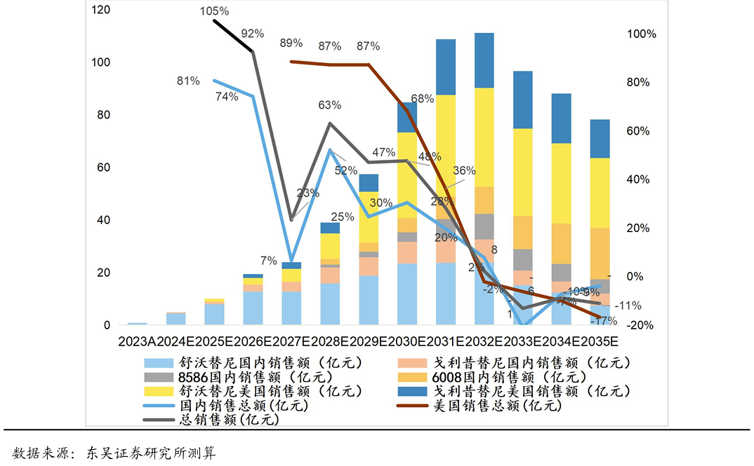基于上述假设,舒沃替尼国内销售峰值我们预计达到10亿元,海外销售峰值我们预计达到6亿美金(美国4亿美金)。