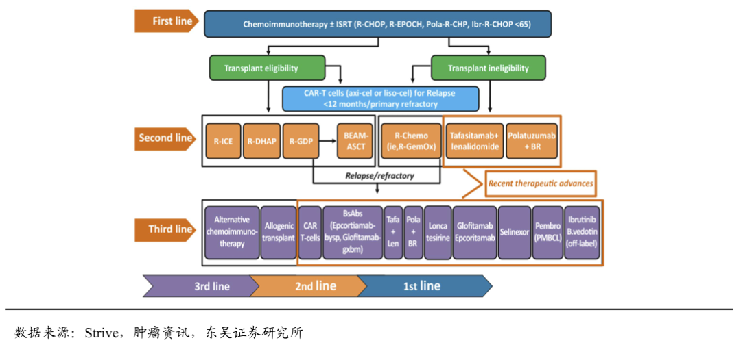 近20年来,R-CHOP(利妥昔单抗联合环磷酰胺、多柔比星、长春新碱和泼尼松)6-8个疗程一直是弥漫大B细胞淋巴瘤(DLBCL)患者的标准一线治疗方案,R-CHOP方案的出现显著提升了DLBCL患者一线的治愈率,5年PFS率与OS率攀升至约60%与约77%的水平,仍有30%患者复发或难治。后续不断有研究者希望通过调整R-CHOP剂量或增加小分子抑制剂比如硼替佐米或伊布替尼等来替代R-CHOP方案,但大多都以失败告终。DLBCL具有很强的异质性,目前RCHOP方案可以治愈60%~70%患者,但是近年来新的靶向小分子、抗体药物偶联物(ADC)、双特异性抗体、CAR-T等新分子实体在DLBCL领域不断探索,有望创造出能够超越R-CHOP的新治疗方案以及解决r/r DLBCL疗效不佳的困境。DZD8586目前针对DLBCL正在国内进行临床I/II期,有望在2025年更新数据。
