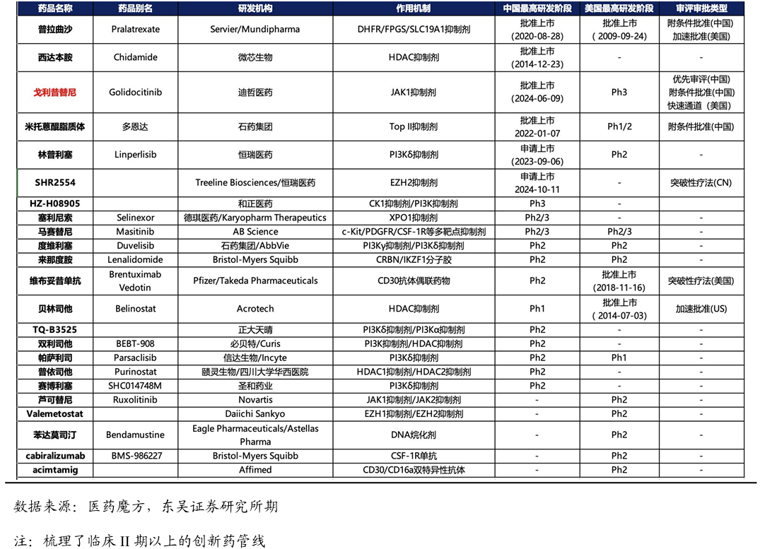3.2. PTCL近十年没有创新药上市,戈利昔替尼突破治疗瓶颈
