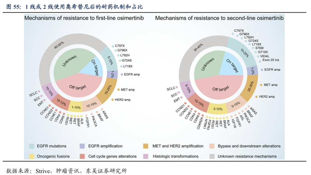 组织学或表型转化:如从腺癌转变为鳞状细胞癌或小细胞肺癌癌症表型和上皮-间质转化(EMT)。一、二线奥希替尼耐药后发组织学转化的比例分别为10%-15%和5-15%。