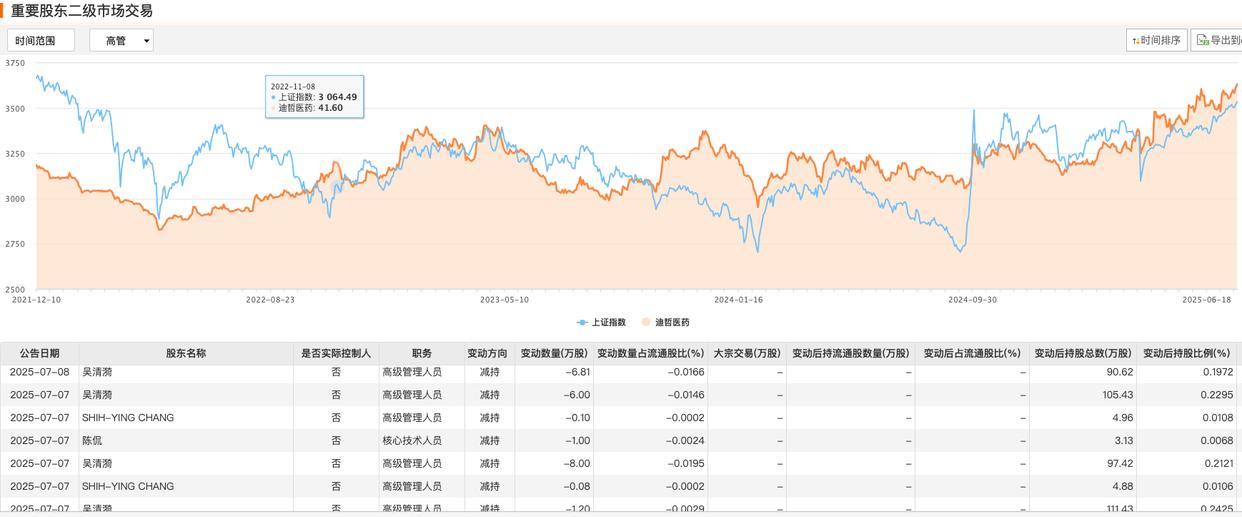 此外,6月25日公告显示,首席医学官兼副总经理杨振帆、副总经理陈素勤及首席科学家Qingbei Zeng计划自7月18日起分别减持115.4万股、12.9万股和8.5万股,所有减持股份均来源于股权激励,公司称减持原因为“个人资金需求及缴纳相关税款”。
