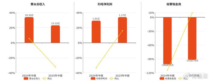 公司营业总收入为13.12亿元,在已披露的同业公司中排名第54。归母净利润为1.17亿元,在已披露的同业公司中排名第40,较去年同报告期归母净利润增加1619.44万元,同比较去年同期上涨16.01%。经营活动现金净流入为-3132.75万元,较去年同报告期经营活动现金净流入增加326.10万元。
