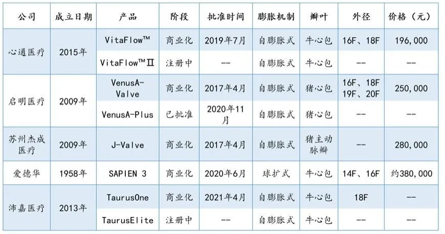 根据信达证券的统计,目前国内已有多款介入瓣获批上市,研发企业包括为微创心通医疗科技有限公司(02160.HK)、杭州启明医疗器械股份有限公司(下称“启明医疗”,02500.HK)、沛嘉医疗有限公司(09996.HK)、苏州杰成医疗科技有限公司、爱德华。