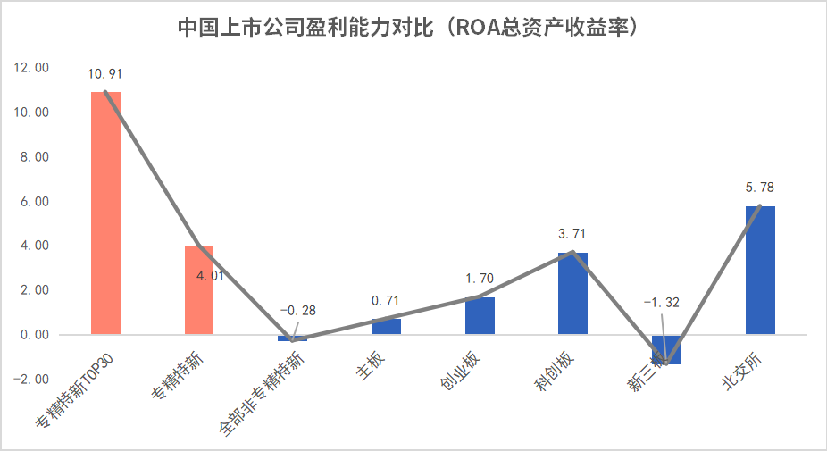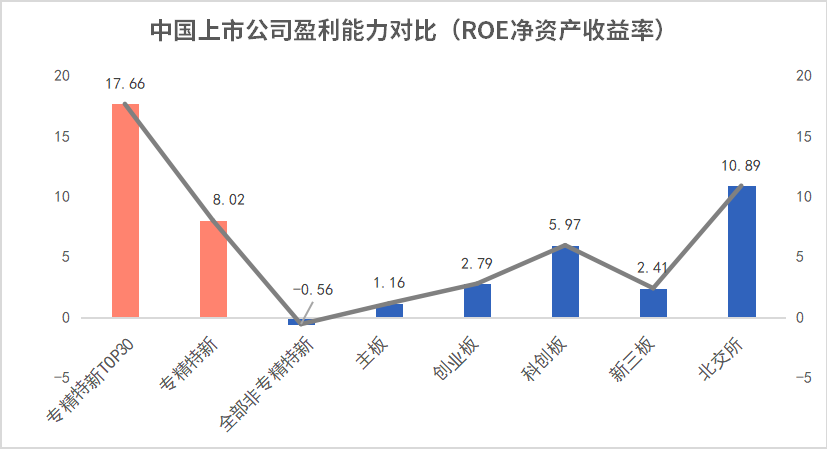 从盈利能力看,专精特新上市公司具有较好表现。这也反映了企业内部良好的财务状况及运营能力。