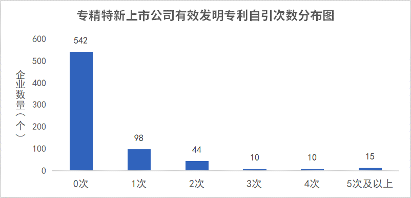 不难发现,在719家样本公司中,仅有177家公司有专利自引用行为,专利自引用次数在5次及以上的公司仅有15家,占比仅2%。专精特新企业整体呈现出的低自引率反映出企业在技术深度上存在的问题。