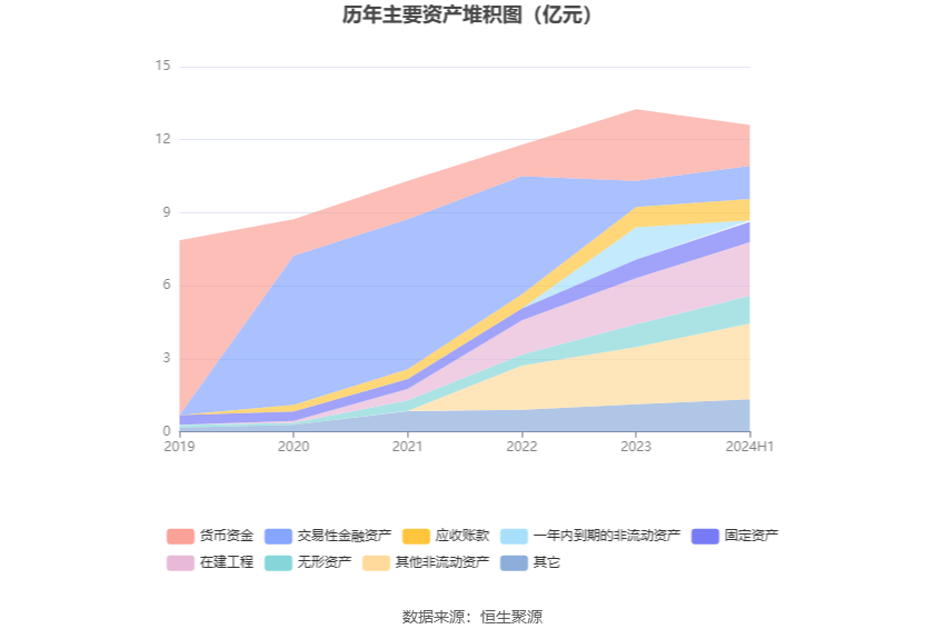 资产重大变化方面,截至2024年上半年末,公司一年内到期的非流动资产较上年末减少95.39%,占公司总资产比重下降9.56个百分点;货币资金较上年末减少42.96%,占公司总资产比重下降8.92个百分点;其他非流动资产较上年末增加33.05%,占公司总资产比重上升7.03个百分点;在建工程较上年末增加15.90%,占公司总资产比重上升3.11个百分点。