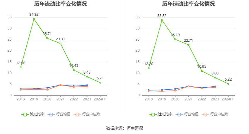 2024年上半年,公司流动比率为5.71,速动比率为5.22。