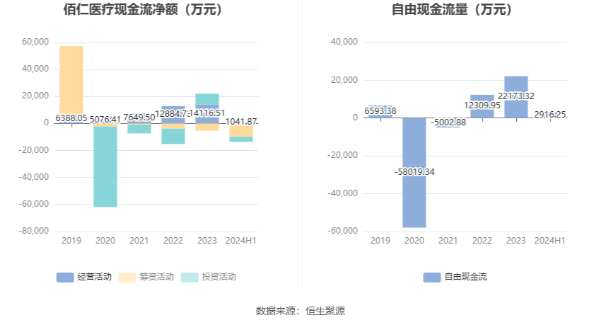 进一步统计发现,2024年上半年公司自由现金流为2916.25万元,上年同期为-8039.56万元。