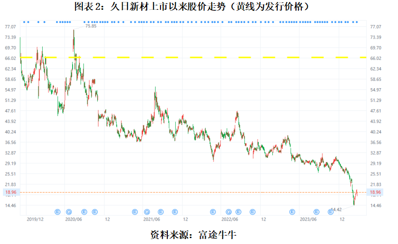 受糟糕的业绩表现影响,自上市以来,久日新材的股价长期跌跌不休,且自2020年8月之后均低于发行价格。