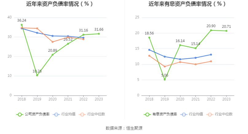 在偿债能力方面,公司2023年年末资产负债率为31.66%,相比上年末上升0.50个百分点;有息资产负债率为20.71%,相比上年末下降0.19个百分点。