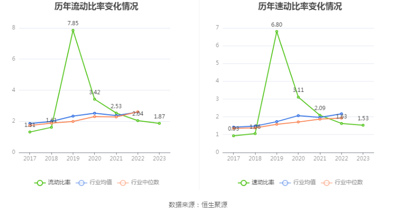 2023年,公司流动比率为1.87,速动比率为1.53。