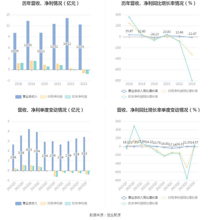 数据显示,2023年公司加权平均净资产收益率为-3.59%,较上年同期下降5.18个百分点;公司2023年投入资本回报率为-2.41%,较上年同期下降3.98个百分点。