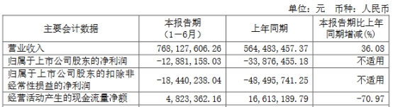 久日新材(688199.SH)近日披露2024年半年度报告。2024年上半年,公司实现营业收入7.68亿元,同比增长36.08%;归母净利润为-1288.12万元,上年同期为-3387.65万元;扣非净利润为-1844.02万元,上年同期为-4849.57万元;经营活动产生的现金流量净额为482.34万元,同比下降70.97%。