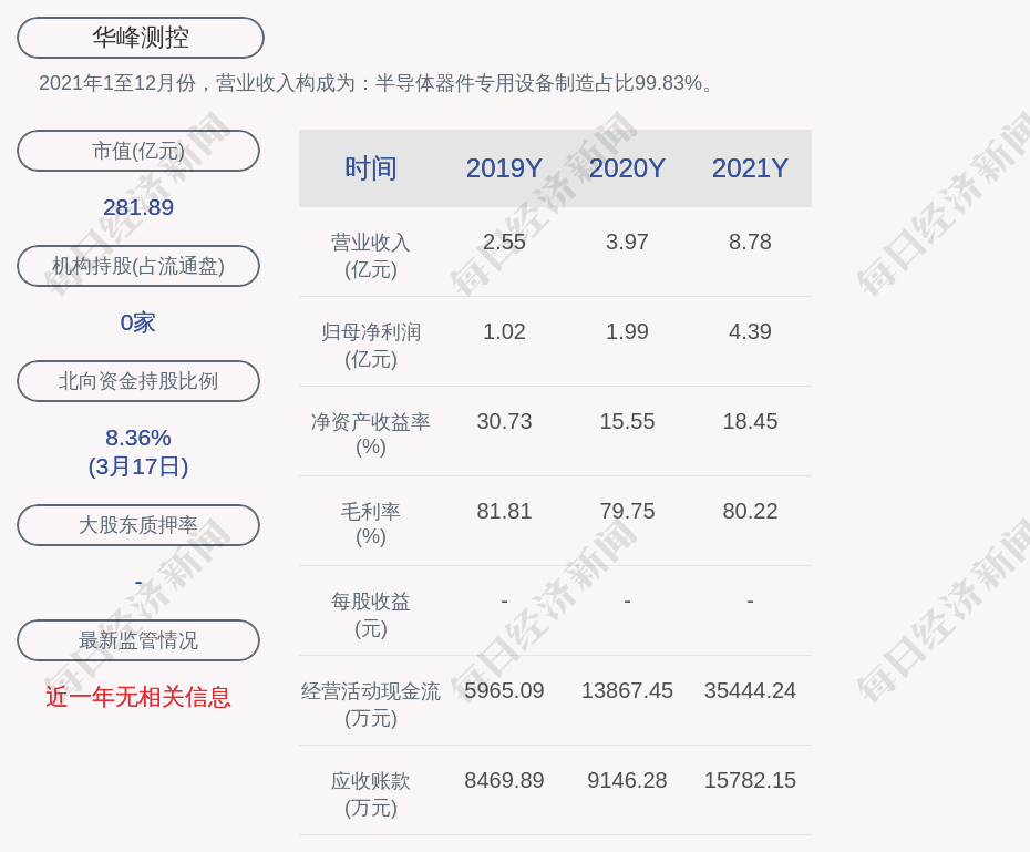 2021年1至12月份,华峰测控的营业收入构成为:半导体器件专用设备制造占比99.83%。