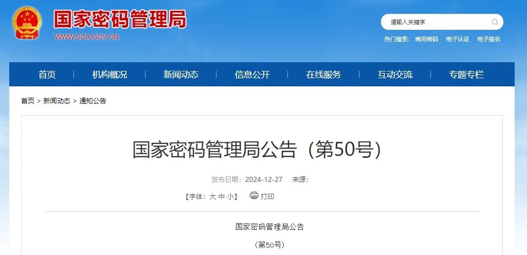 近日,国家密码管理局公告(第50号)发布19项密码行业标准,并将于2025年7月1日起正式实施。其中,北京信安世纪科技股份有限公司(股票代码:688201)牵头1项,参编4项。
