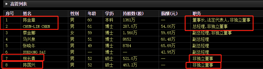 最新数据显示,陈金章、陈春来、CHUN-LIN CHEN、林长青、陈国兴的持股市值分别为23.85亿元、12.16亿元、5.01亿元、9.12亿元、8.12亿元。粗略估算,相比2021年,上述五位股东的财富合计缩水超百亿元。