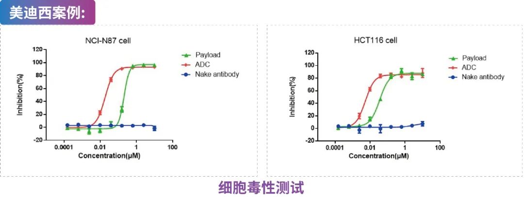 ADC,裸抗及Payload与靶细胞共孵育,通过CCK-8、CTG、MTT等方法测试各个待测物对肿瘤细胞的毒性。