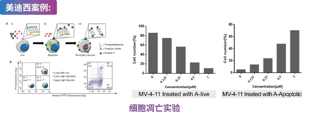 MV-4-11细胞用Compound A处理并使用 PI/Annexin V染色,然后进行 FACS 分析。数据显示Compound A促进MV-4-11细胞凋亡。