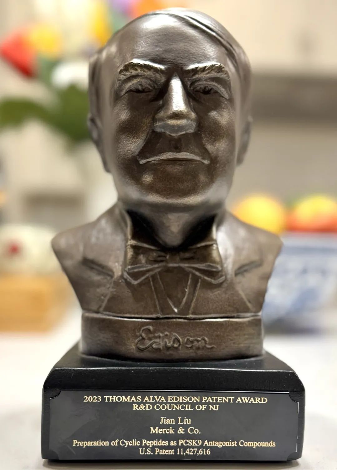 近日,上海美迪西生物医药股份有限公司(以下简称“美迪西”)药物发现事业部总裁刘建博士凭借之前在美国默沙东工作的PCSK9抑制剂新型大环肽MK-0616专利,斩获新泽西州研发委员会颁发的2023年托马斯·阿尔瓦·爱迪生专利奖(Thomas Alva Edison Patent Award)。