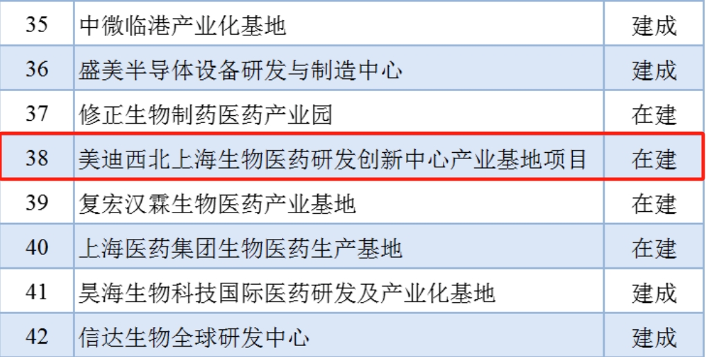 上海美迪西生物医药股份有限公司(以下简称“美迪西”)北上海生物医药研发创新中心产业基地项目,即美迪西普瑞生物医药科技(上海)有限公司,入选2024年上海市重大工程科技产业类清单!