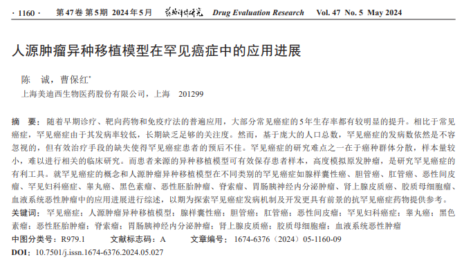 诚邀您阅读这篇综述,与美迪西一同探索罕见癌症治疗的新路径,加速新药研发进程,通过PDXs模型的应用,期待能够为那些与罕见癌症斗争的患者尽早带来治疗的新希望。