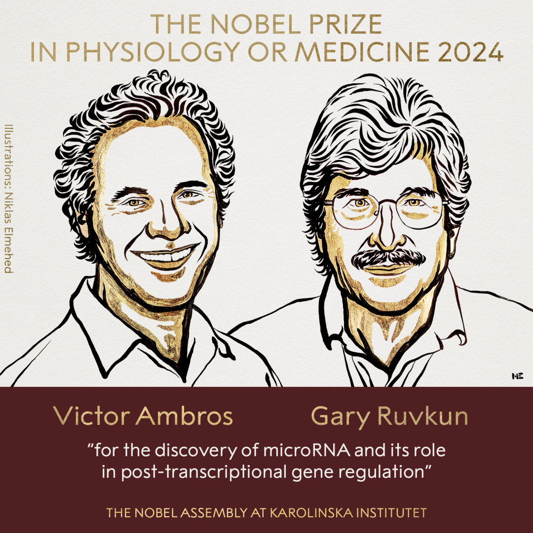 10月7日,2024 年诺贝尔生理学或医学奖被授予了miRNA(小分子核糖核酸)的发现者麻省大学医学院自然科学教授Victor Ambros和波士顿哈佛医学院的遗传学教授Gary Ruvkun。以表彰他们“发现mRNA及其在转录后基因调控中的作用”。